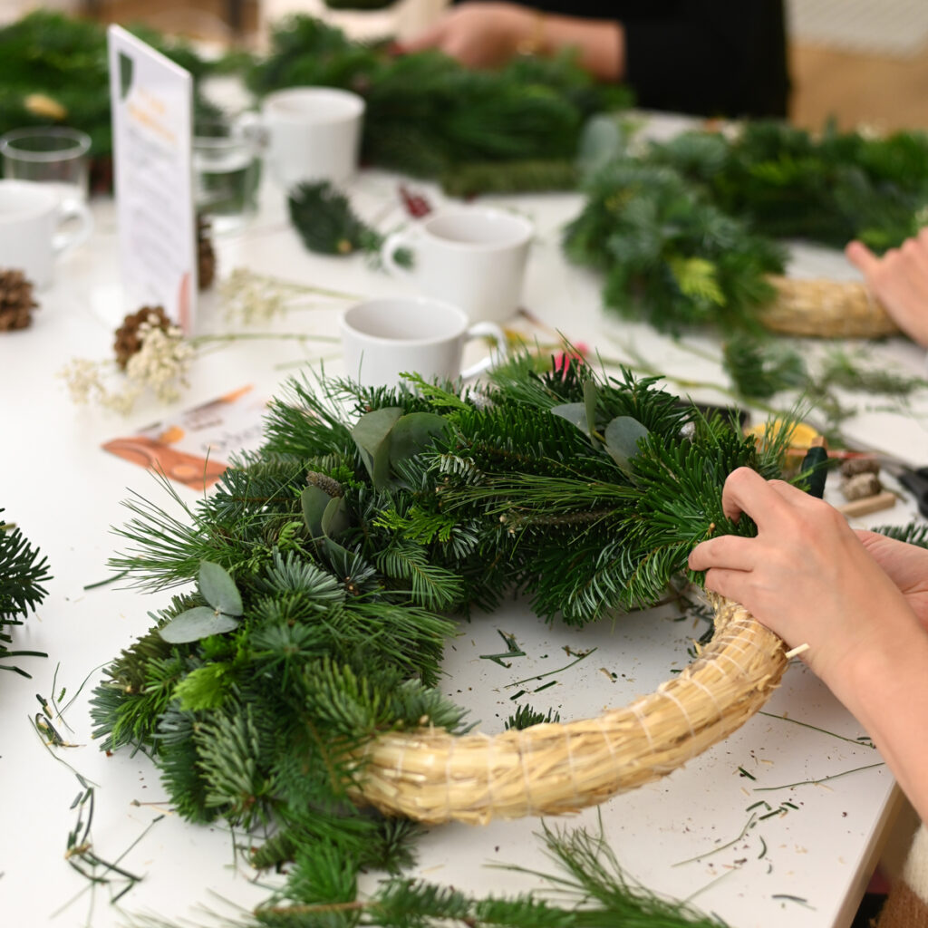Pünktlich zum ersten Advent werden wir bei Weihnachtsmusik und Punsch im Studio wieder wunderschöne Kränze binden und dekorieren. Ganz egal ob als klassischer Adventkranz oder doch lieber als Türkranz – du kannst deinen selbst gebundenen Weihnachtskranz dann einfach so verwenden, wie du möchtest. Vor Ort wird es eine bunte Auswahl an Trockenblumen sowie Reisig, Zweigen und vieles mehr geben.