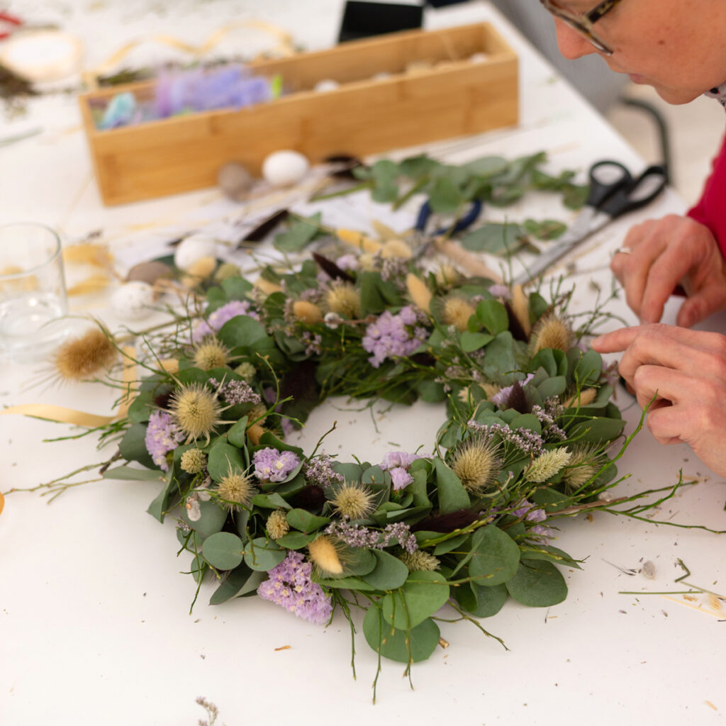 Trockenblumen sind eine wunderschöne Deko und vielseitig einsetzbar. Im Workshop kannst du entweder einen Wand- bzw. Türkranz oder ein Flower Crown mit Trockenblumen binden. Du lernst zunächst mehr rund ums Thema Trockenblumen und im Anschluss bindest du unter Anleitung deinen eigenen Deko-Kranz bzw. dein Haar-Accessoire aus Trockenblumen.