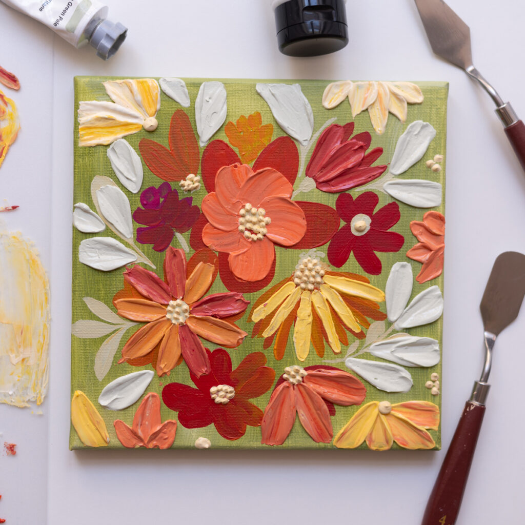 Im Workshop werden wir uns ansehen, wie man mit Strukturpaste und Acrylfarbe tolle strukturierte Bilder gestaltet.